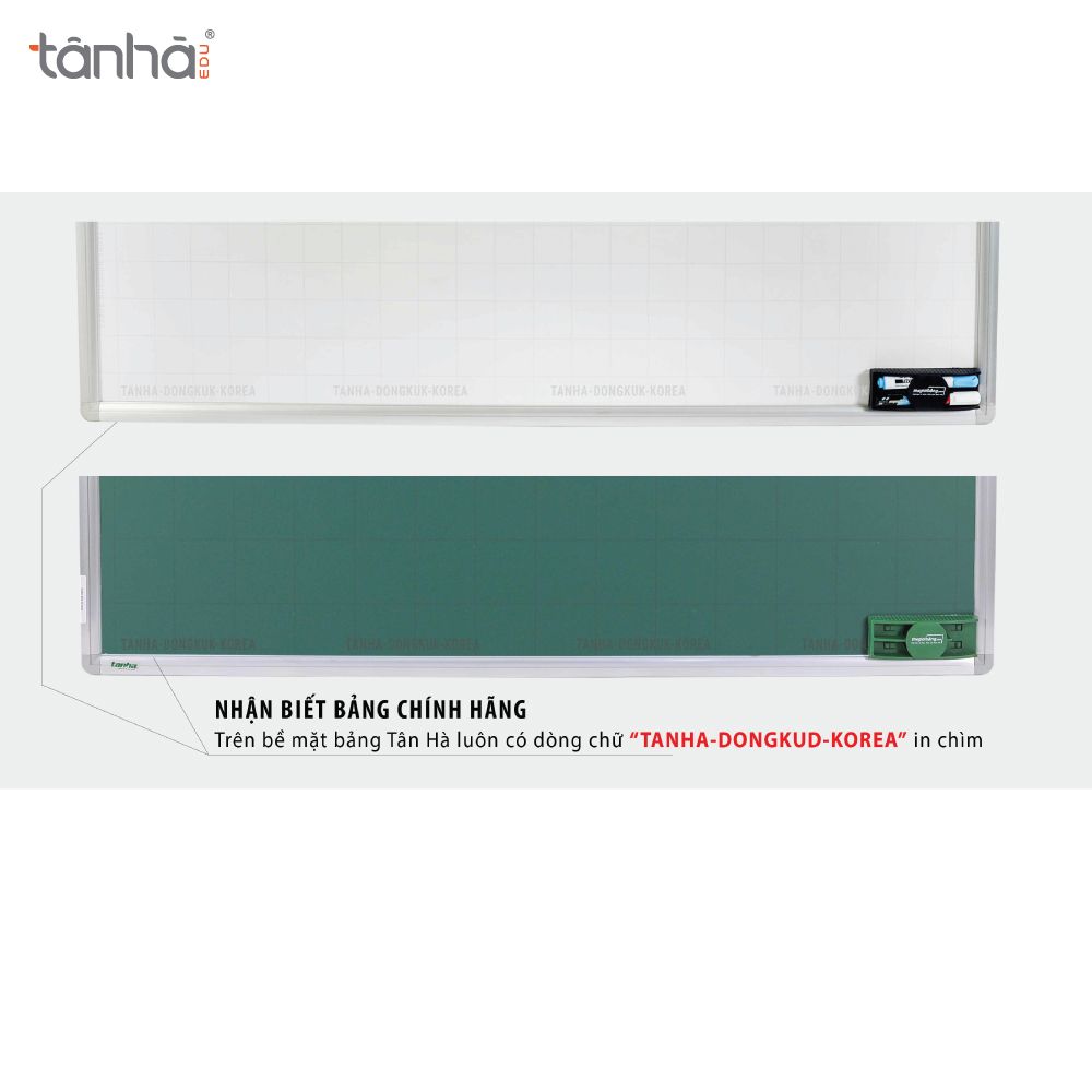 Bề mặt Dongkuk nhập khẩu từ Hàn quốc có in chìm logo Tanha-Dongkuk-Korea để phân biệt với hàng China. Bề mặt có 3 loại dòng kẻ: